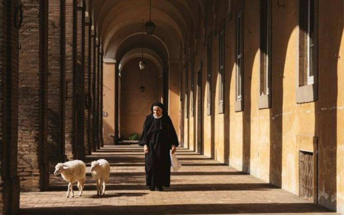 Konu, altıncı yüzyıldan beri Papa ve metropolitlerine tahsis edilen yün kuşakların imalinde kullanılacak yünün tedarik edilmesi. Yemyeşil yamaçlarda otlanırken iki kuzu kendini birden kapalı bir mekânda buluyor ve annelerinin yerine rahibe Rosaria’nın ısıtıp kendilerine biberonla içirdiği ne idüğü belirsiz süte talim ediyorlar.